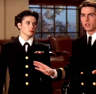 Voici donc la première plongée de Sorkin dans le milieu du cinéma. Après avoir écrit plusieurs ébauches du scénario seul dans son appartement, il travaille conjointement avec Reiner pour améliorer certains points. L’autre tributaire de ses débuts s’appelle William Goldman, un des hommes forts de Castle Rock, qui deviendra en quelque sorte son mentor. Stupéfait par la vitesse d’exécution de ces hommes d’expérience, il sera également impressionné par le casting rassemblé. Tom Cruise tient le haut de l’affiche, lui la star incontournable de la fin des 80s. À ses côtés, le géant Jack Nicholson qui, en quelques apparitions, crève littéralement l’écran. Demi Moore, Kiefer Sutherland et Kevin Bacon complètent la distribution pour un film qui nous plonge à l’intérieur d’une enquête troublante. Deux avocats militaires (Tom Cruise et Demi Moore) sont envoyés sur la base américaine de l’US Marine Corps à Guantánamo à Cuba pour élucider les causes réelles de la mort d’un marines, décédé après avoir été agressé dans sa chambre par deux autres marines.