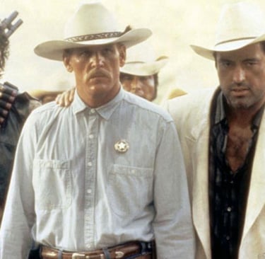 Nolte a préparé son rôle comme un hommage aux héros du western classique — Gary Cooper, Randolph Scott — adoptant une posture stoïque, sèche, un mutisme tendu qui traverse tout le film. Hill, lui, assume cette filiation : cadres larges, soleil écrasant, villes-frontières poussiéreuses. Pour préparer son rôle, Nick Nolte étudia longuement les attitudes et comportements des Texas Rangers, allant jusqu’à suivre certains d’entre eux en patrouille afin de saisir la sobriété, la discipline et la retenue propres à ce corps d'élite. Le film respire d'ailleurs le western, même lorsqu’il adopte les codes du thriller militaire. Hill a rassemblé une sacrée équipée devant la caméra. Rarement une production de cette époque aura réuni une telle concentration de "gueules" : Michael Ironside, Clancy Brown, William Forsythe, Rip Torn… Des visages durs, fatigués, charpentés pour incarner la violence d’un monde où les règles ne tiennent qu’à un fil.